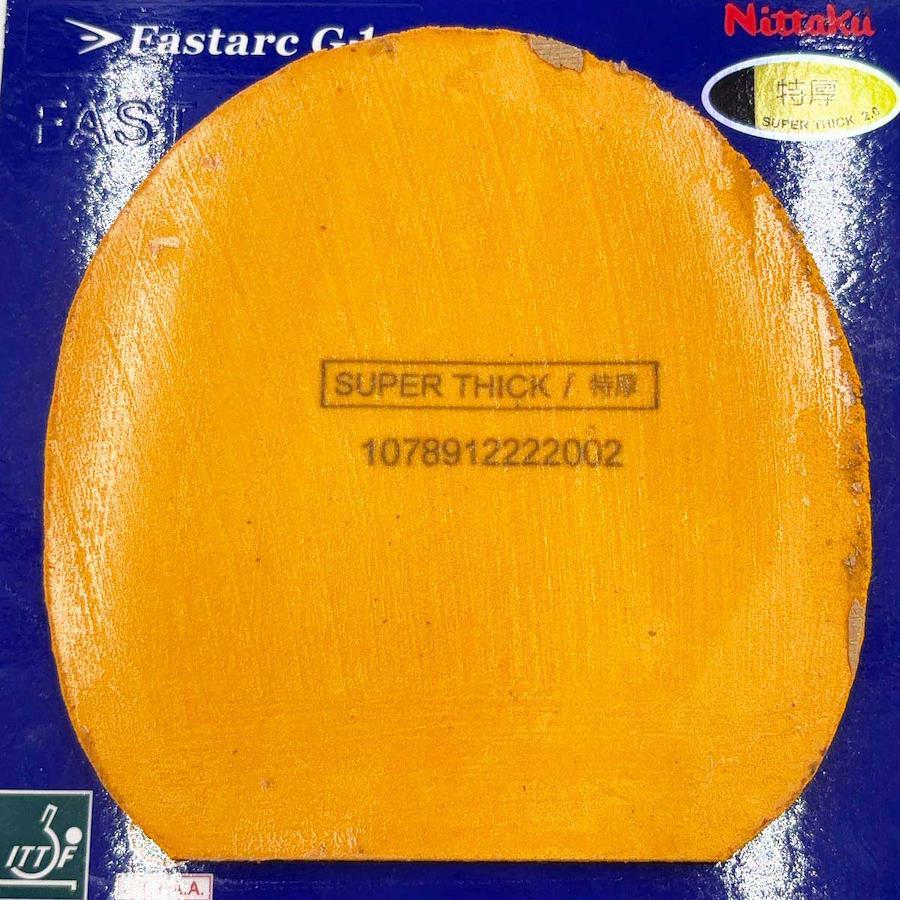 [タイプ] ファスタークG-1 黒 特厚 卓球ラバー[縦(最大)] 約155mm[横(幅/最大)] 約150mm[下辺] 約95mm[状態] 端などに傷みがみられます。