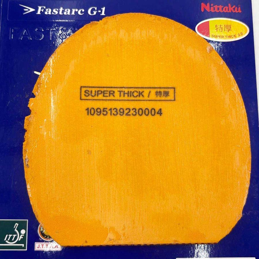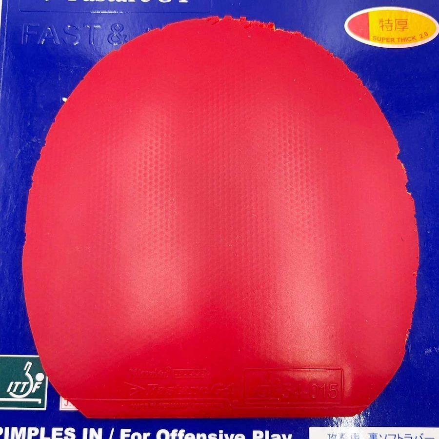 [タイプ] ファスタークG-1 赤 特厚 卓球ラバー[縦(最大)] 約154mm[横(幅/最大)] 約147mm[下辺] 約90mm[状態] 端などに傷みがみられます。