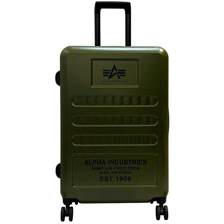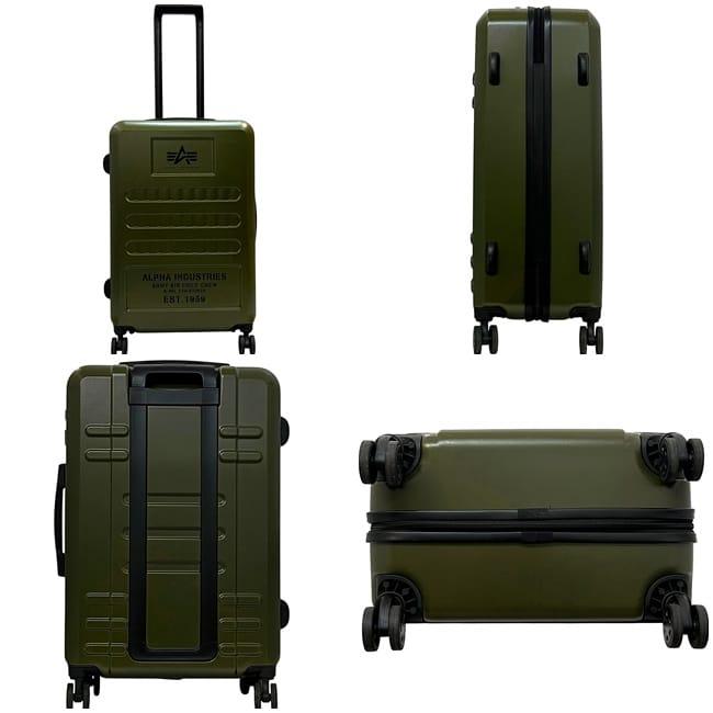 ☆---- 商品について ----☆アルファ インダストリーズ スーツケース ec-24520 カーキ グリーン 美品 48L TSAロック プラスチック 中古 Alpha Industries 鍵付き ファスナー 旅行 キャリーケース 4輪 大容量 軽い 軽量 緑 深緑 シンプル キャスター ブランド 本物 鑑定済み