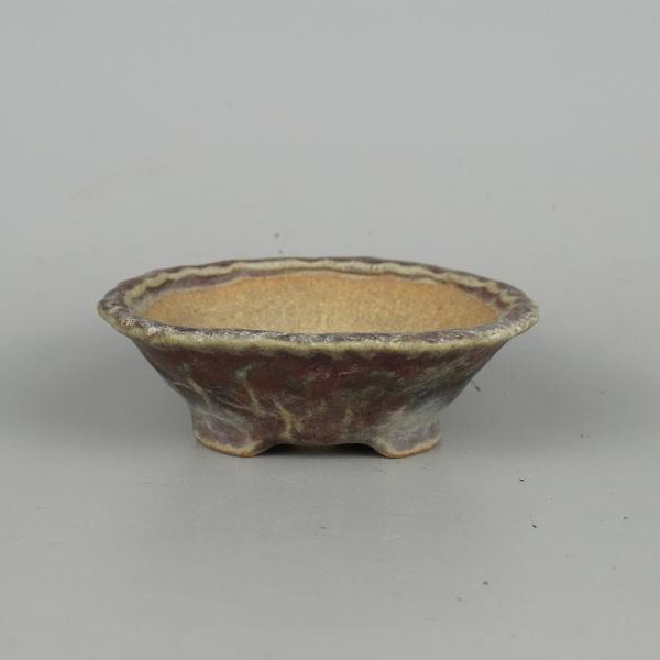 Used Bonsai Pot by Haruyoshi, Small, Long Side Approx. 10.5cm, Round, Glazed, Actual Condition, Used Pot