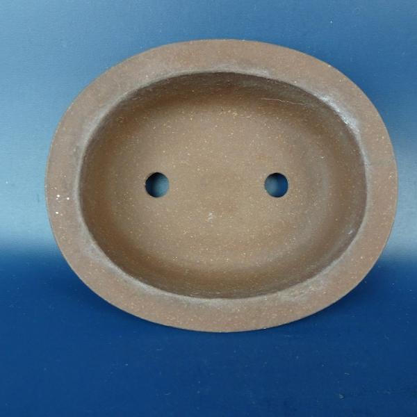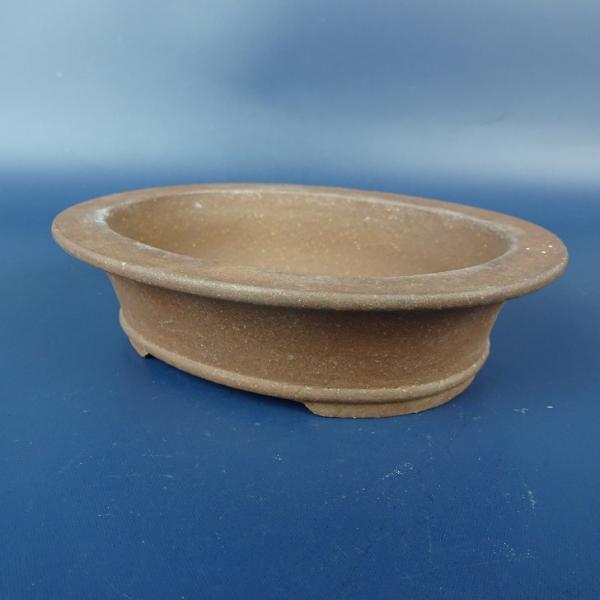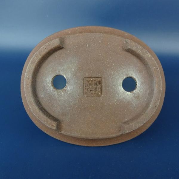 Used Bonsai Pot by Shusou Dojin, Small, Approximately 12.5cm Long, Oval, Outer Rim, Bottom Band, Clay Pot, Chinese Style, Used