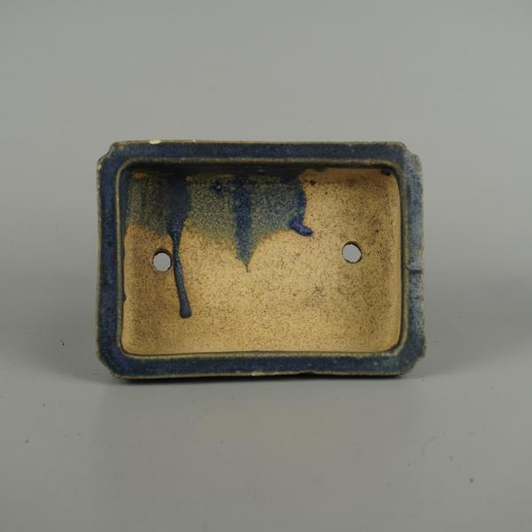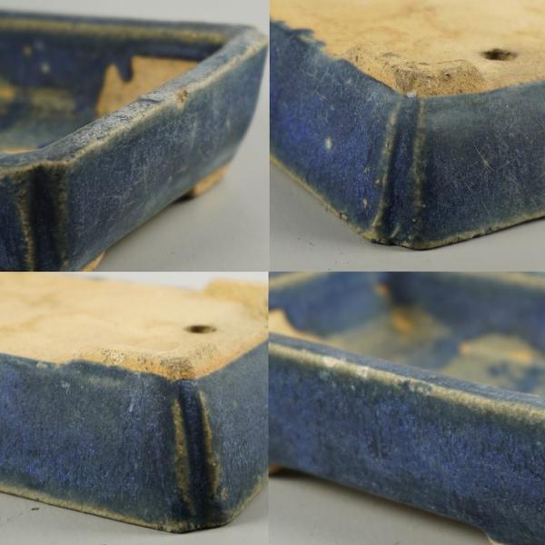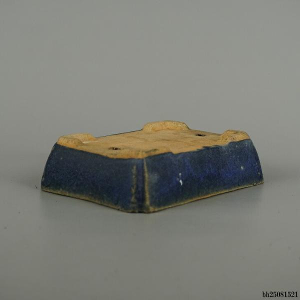 Used Bonsai Pot, No Signature, Small, Long Side Approx. 15.6cm, Rectangular, Corner-Mounted, Glazed, Canton Style, Used Pot