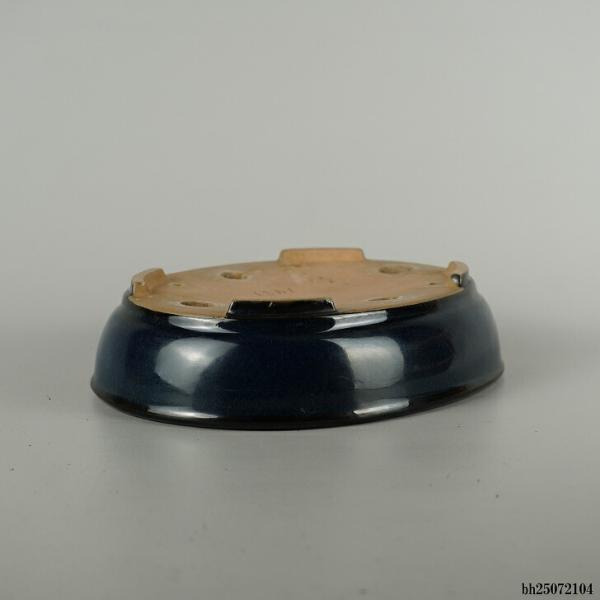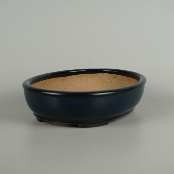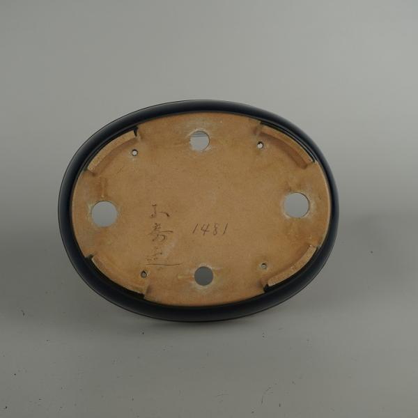 Used Bonsai Pot, Sanbou, Medium Size, Long Side Approx. 21.2cm, Oval, Lapis Lazuli Glaze, Actual Condition, Used Pot