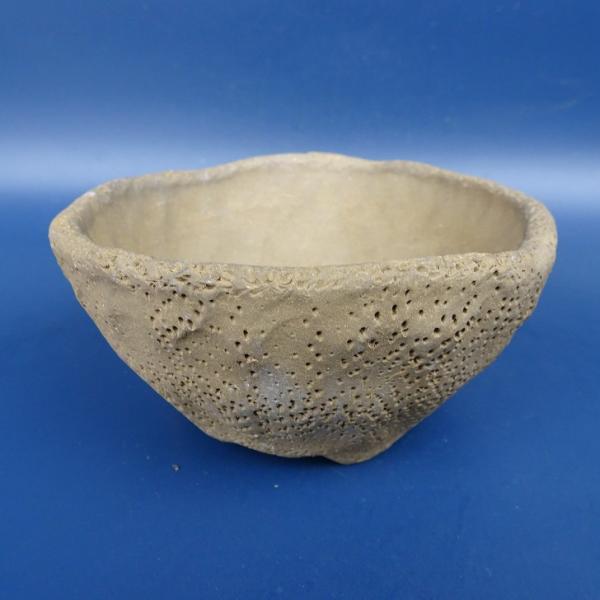 Used bonsai pot, small, approximately 10.5cm long, round pot with relief of a baby mouse, clay, original condition.