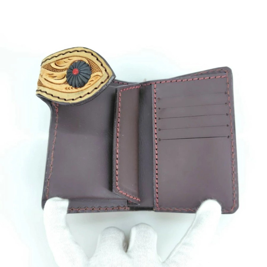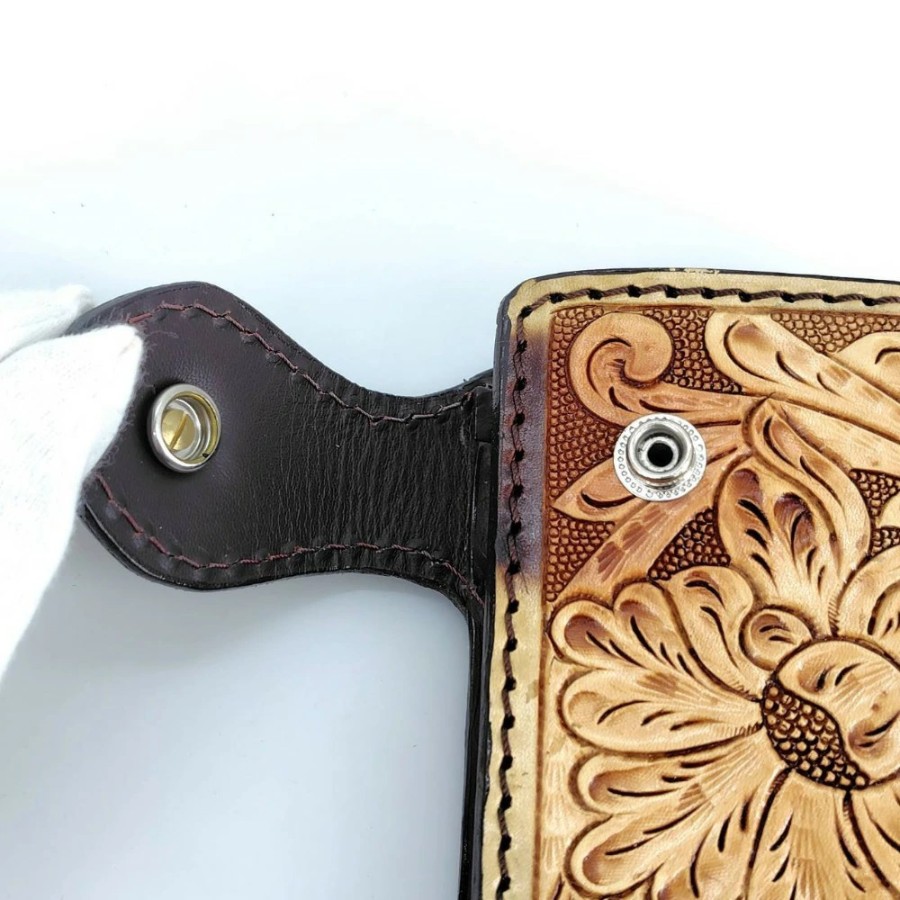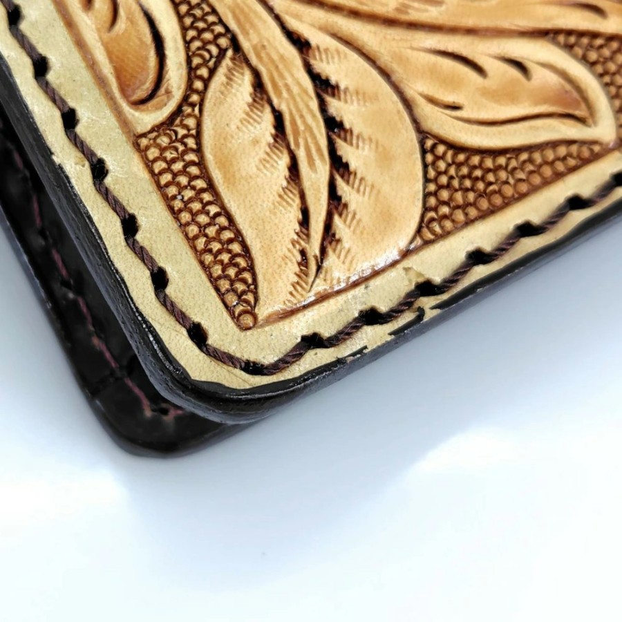 [Used] Carved Leather Wallet, Brown, Men's Bi-fold Wallet, 05w16755 [Tatebayashi Store]