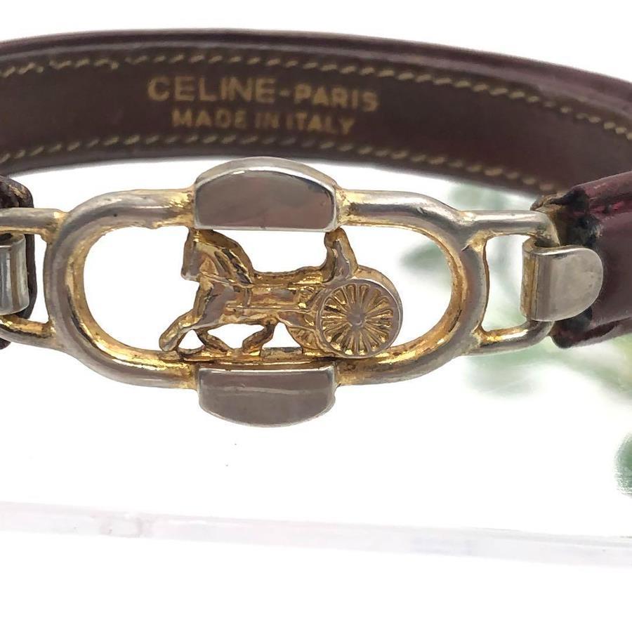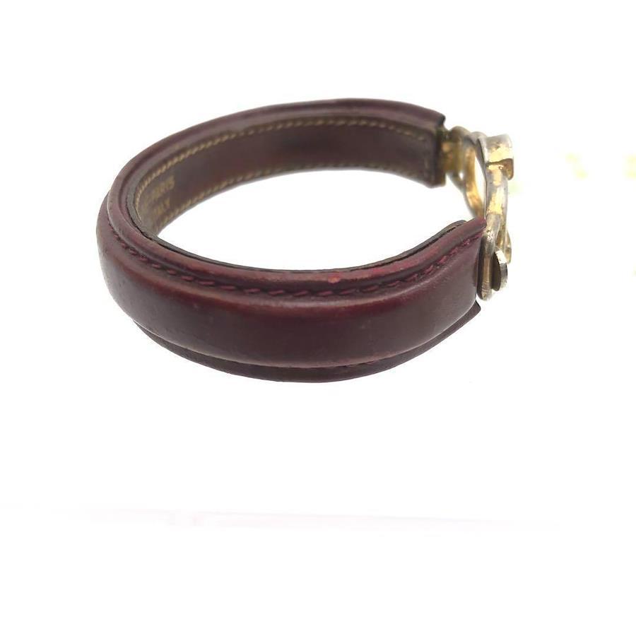 【サイズ】内寸 17.5cm × 幅約1.4cm / 馬車モチーフ 4.5cm × 2cm【素材】レザー / プレートは不明【状態】金属ハゲ、くすみあり レザーはキレイな状態で特に目立ったダメージや汚れなど見当たらず、まだまだご愛用頂けるお品かと思います。【USED品について】写真を拡大するなどしてしっかりご覧になったうえでご検討下さい。 / 中古品ですので小傷等お気になされる神経質な方はご遠慮ください。 / 新品、展示品レベルのきれいな状態のお品物でも一旦はどなたかの手に渡ったものであることをご理解の程お願いいたします。 / 前所有者のメンテナンス状況、保管状況はわかりかねます点ご了承下さい。
