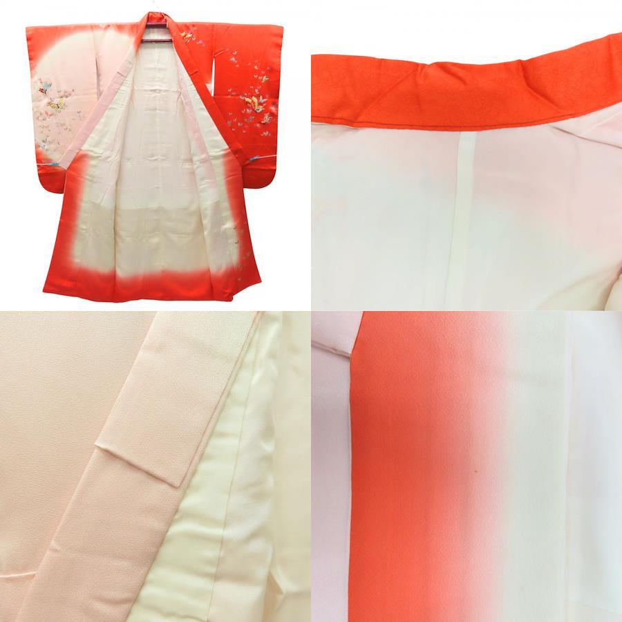 | 品名 | 【中古】 子供着物 七五三 正絹(金銀糸除く) ピンク系 朱色 女の子 7歳 刺繍 |