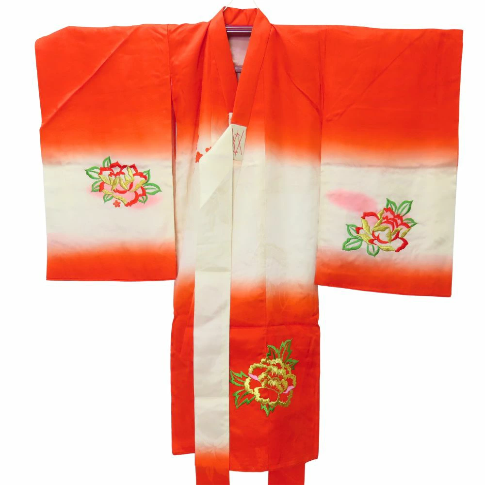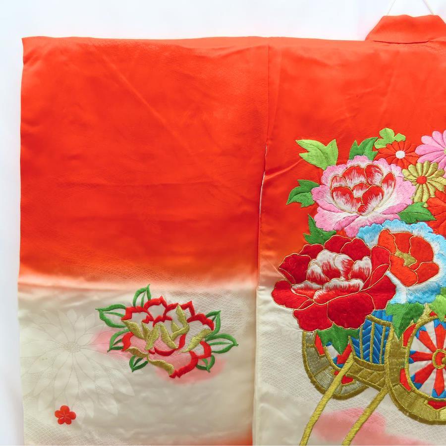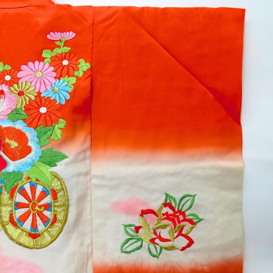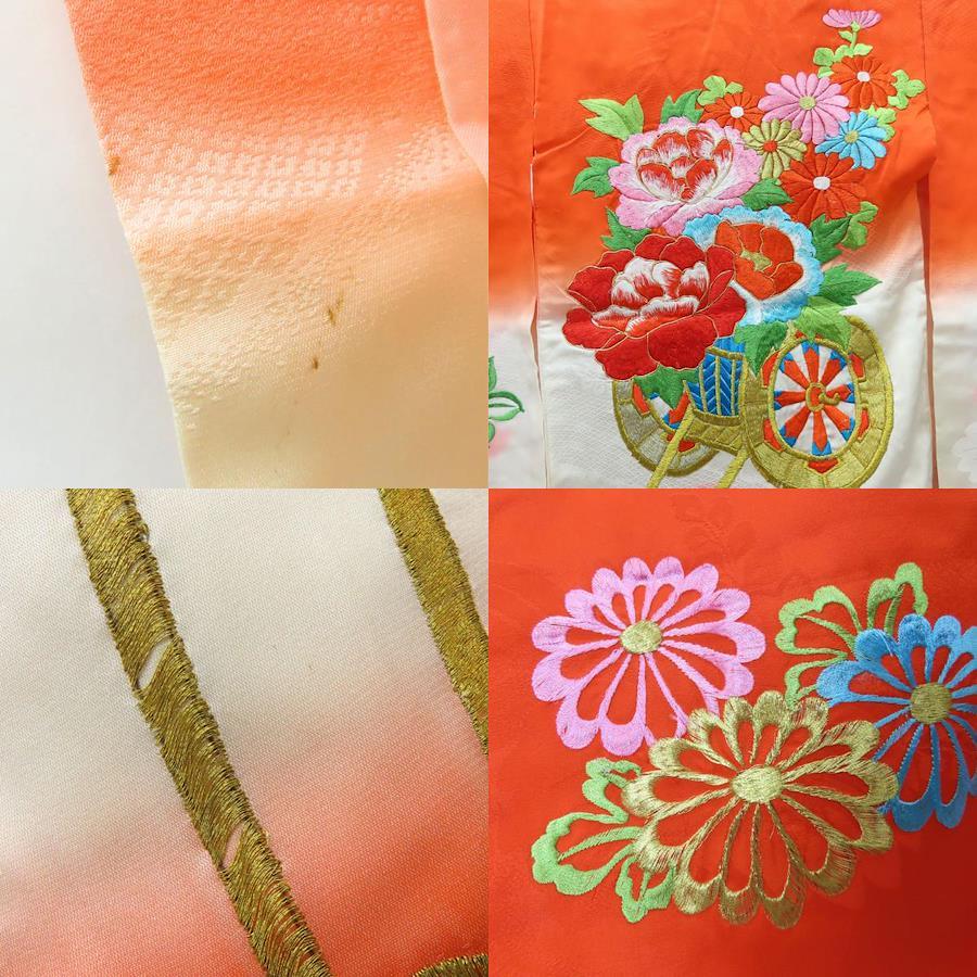 | 品名 | 【中古】 子供着物 合成繊維 金糸 オレンジ クリーム 女の子 七五三 刺繍 |