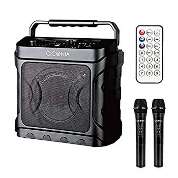 ワイヤレスマイクが2本付属で同時に使用可能、本体にマイクホルダーが装着可能