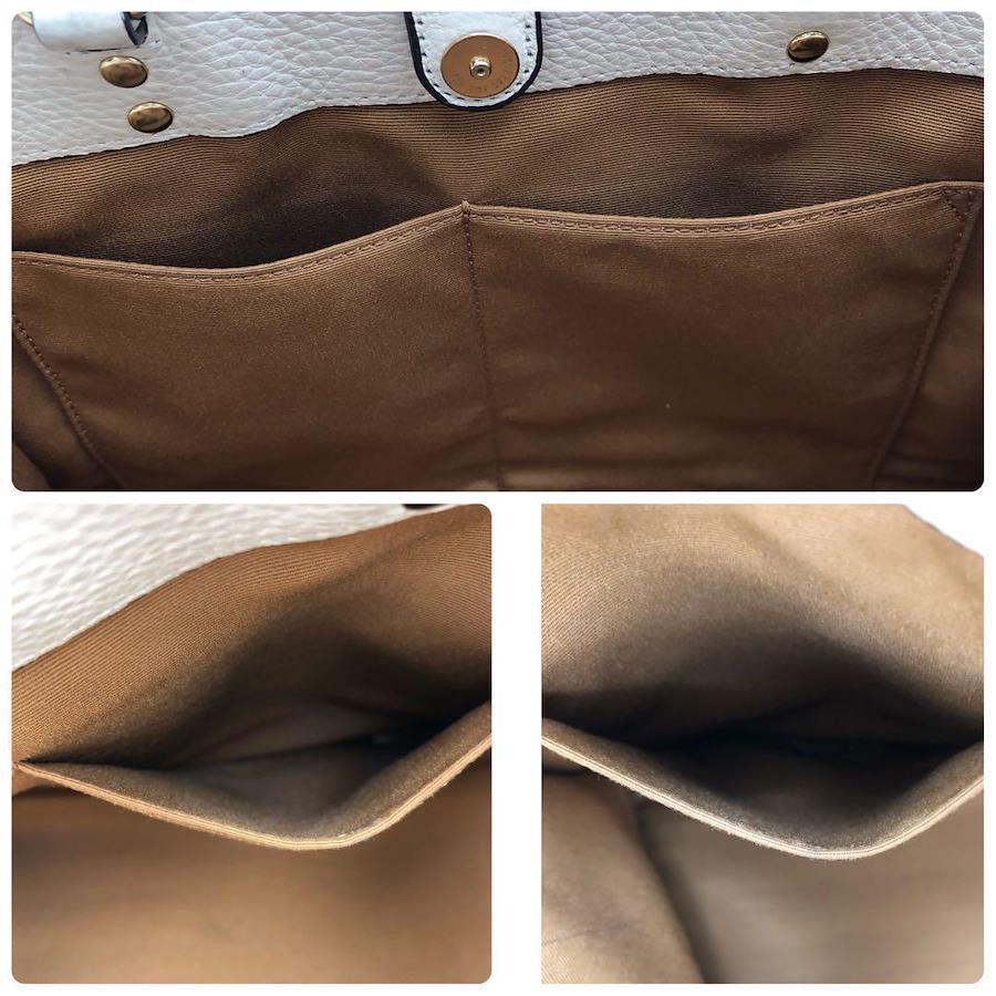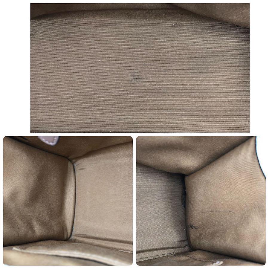 【状態】ハンドル一部コバ剥がれあり、表面数カ所汚れあり、内側端汚れあり(各画像参照下さい) コバ剥がれは後ろ側ハンドル上部片側約7cm、前側ハンドル上部片側約4cm 補修跡あり、持った時に少し違和感がありま。主観になりますが近くで見ないと分からないかと思います。コバ剥がれがありますがそれ以外は目立ったダメージなど見当たらず、まだまだご愛用頂けるお品かと思います。