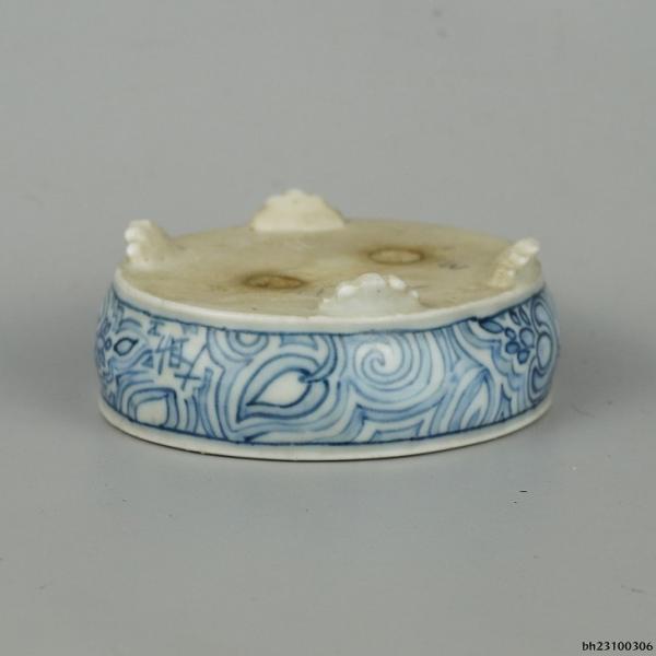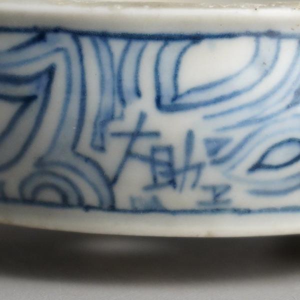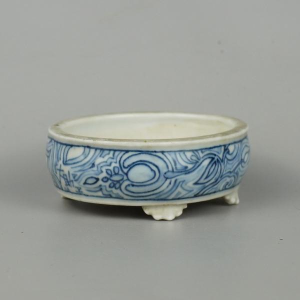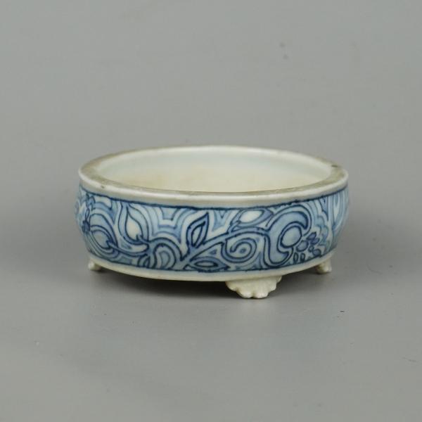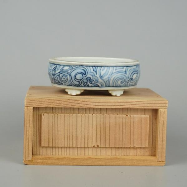 Used Daisuke Bonsai Pot, Small, Approximately 8.5cm Long, Oval, Blue and White Design, Box Included, Actual Condition, Used Pot