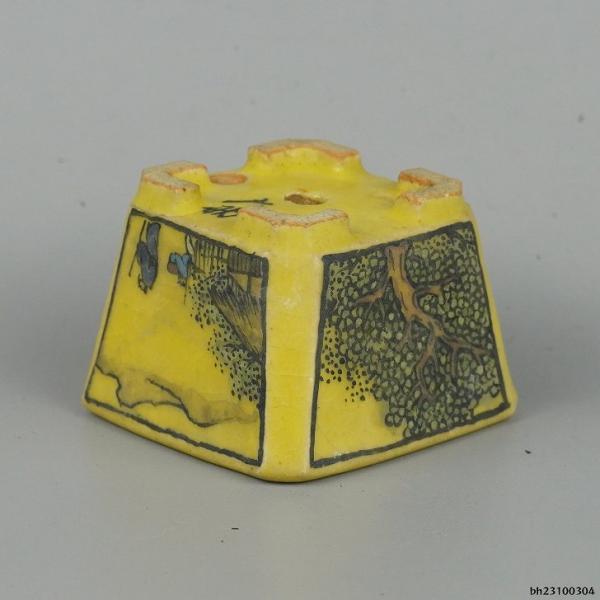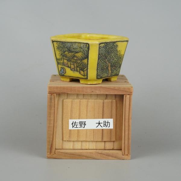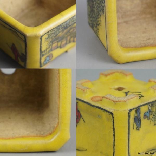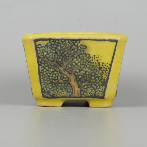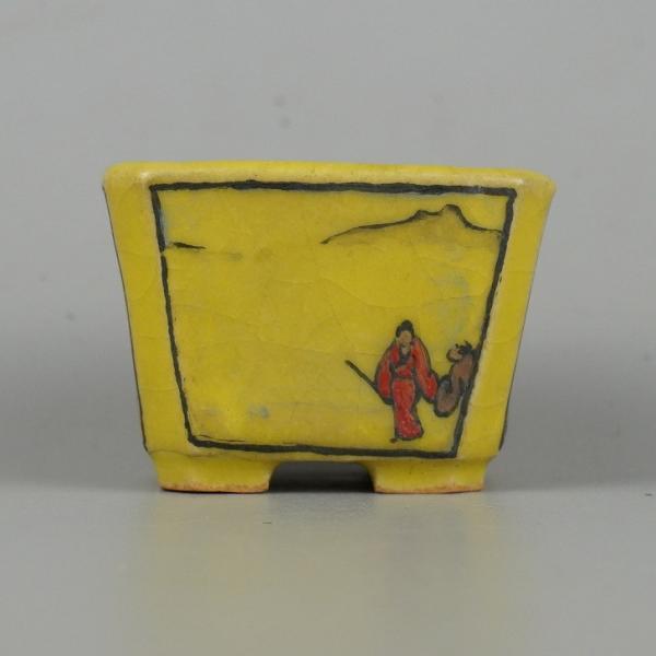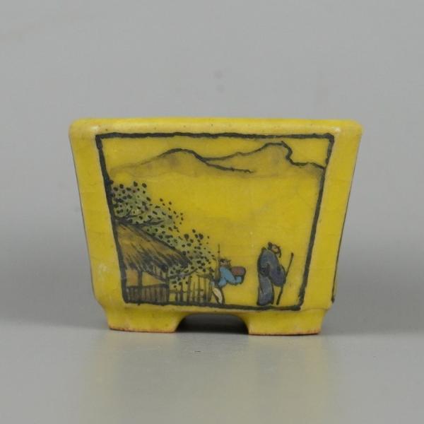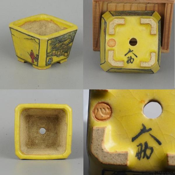 Used Daisuke Shinzan Bonsai Pot, Small, Approximately 5.8cm Long, Square Pot, Colored Landscape Design, Box Included, Actual Condition, Used Pot