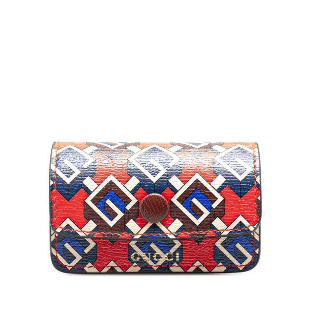 Used, excellent condition Gucci accessory case/etiquette bag holder/geometric G keychain 692957 Leather Gold hardware A rank Multicolor Blue Red Women's GUCCI [Myotani Store]