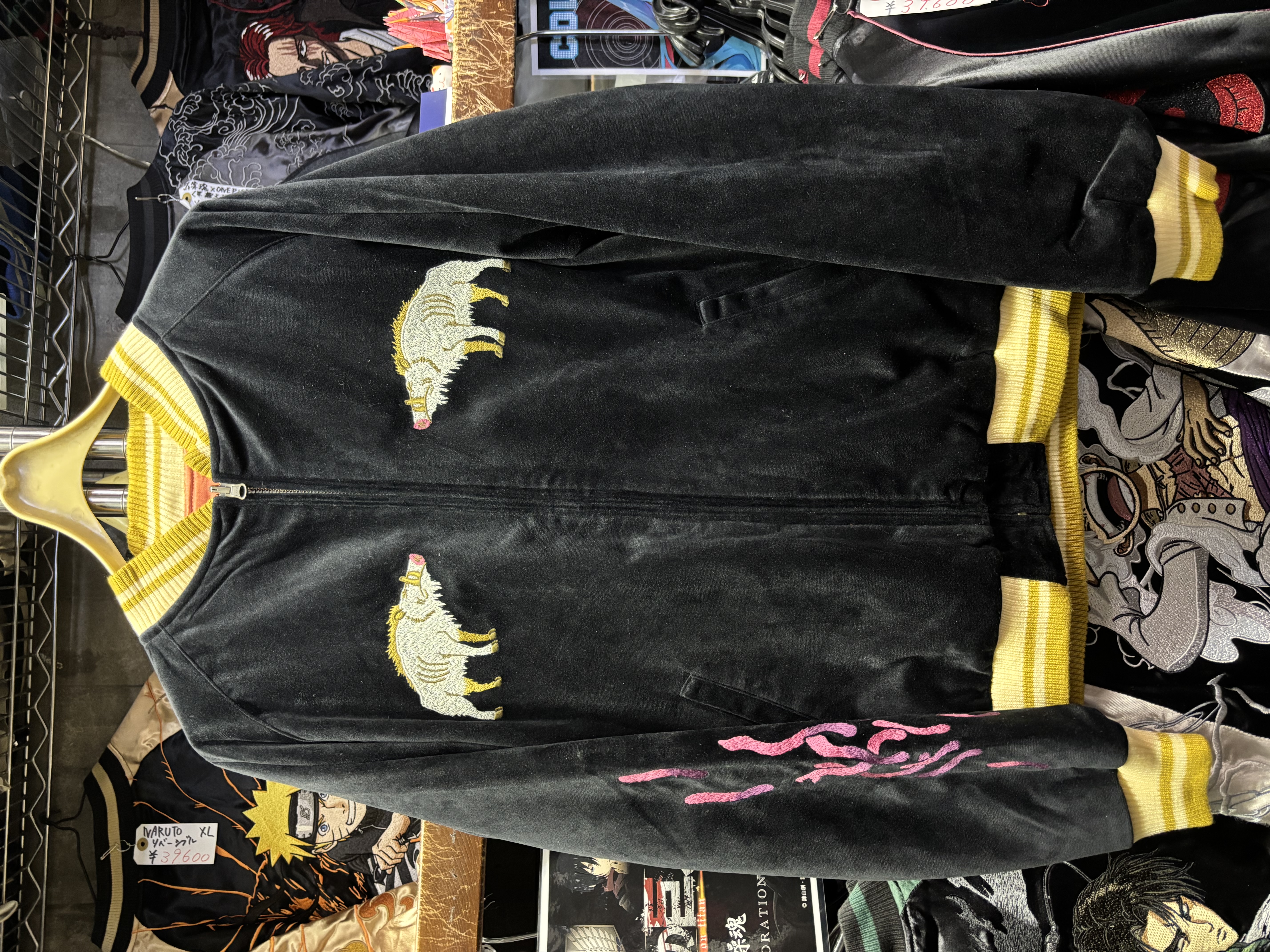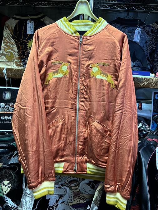2019年に発売された限定モデルの『もののけ姫』スカジャンです。別珍(ベルベット)側にはシシ神様、サテン側にはサンの豪華な刺繍が施されています。中綿入りで暖かく、非常にしっかりとした作りです。●サイズ:L●実寸(平置き):身幅 56cm / 着丈 63cm●状態:使用感のほとんどない中古(極美品)です。(English Translation)Ultra Rare Studio Ghibli 'Princess Mononoke' reversible Souvenir Jacket.Limited 2019 edition. Features heavy padding (wadding) for warmth.• Size: L• Measurements: Width 56cm / Length 63cm• Condition: Pre-owned, Excellent (Like new).• Features: Side A (Velvet/Shishigami), Side B (Satin/San).We ship directly from Nakano Broadway, Tokyo!