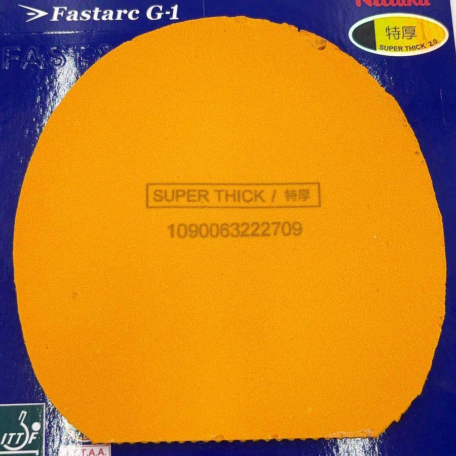 [タイプ] ファスタークG-1 黒 特厚 卓球ラバー[縦(最大)] 約152mm[横(幅/最大)] 約150mm[下辺] 約94mm[状態] 端などに傷みがみられます。