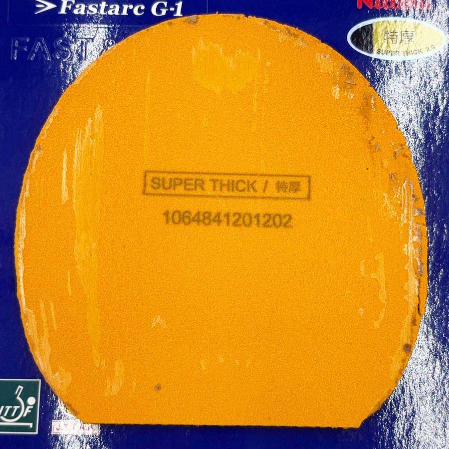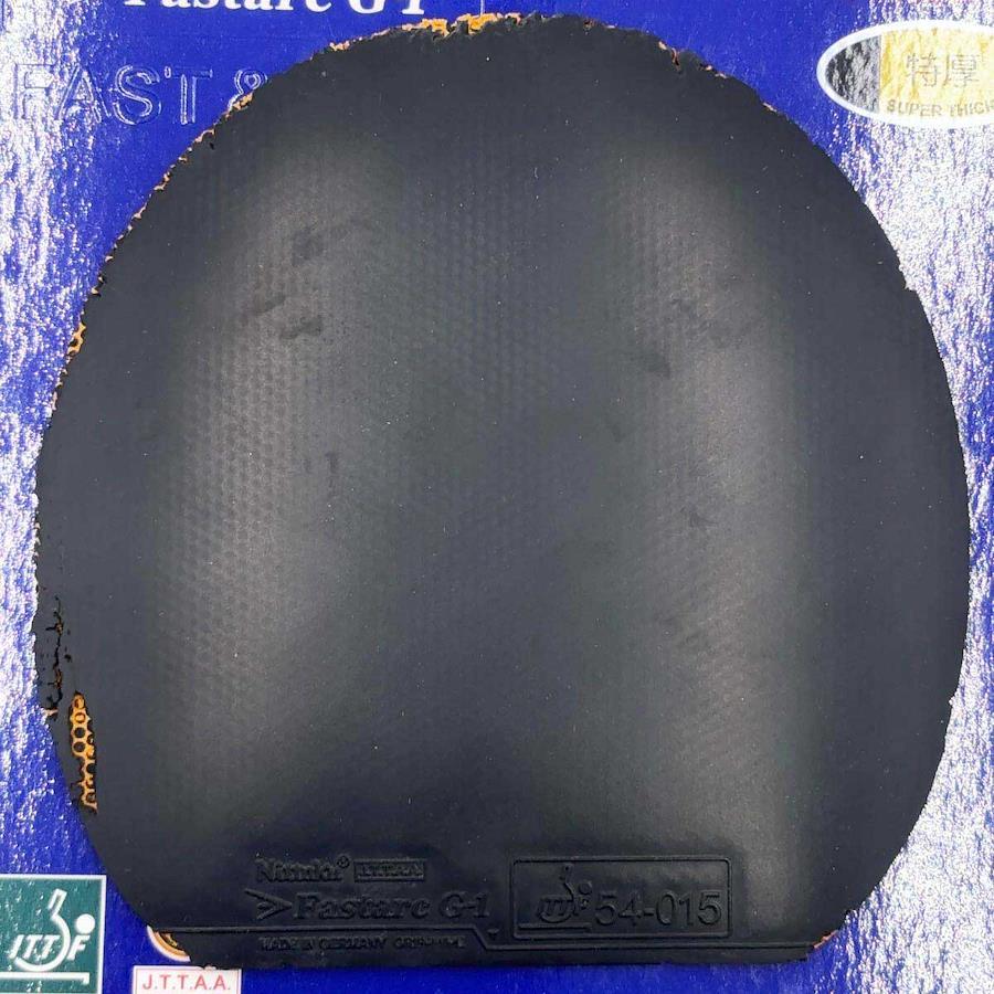 [タイプ] ファスタークG-1 黒 特厚 卓球ラバー[縦(最大)] 約155mm[横(幅/最大)] 約155mm[下辺] 約95mm[状態] 端などに傷みがみられます。