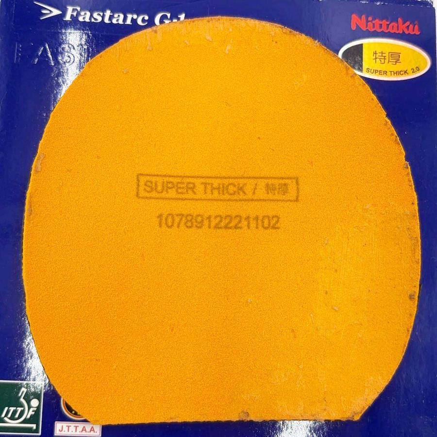 [タイプ] ファスタークG-1 黒 特厚 卓球ラバー[縦(最大)] 約155mm[横(幅/最大)] 約146mm[下辺] 約97mm[状態] 端などに傷みがみられます。