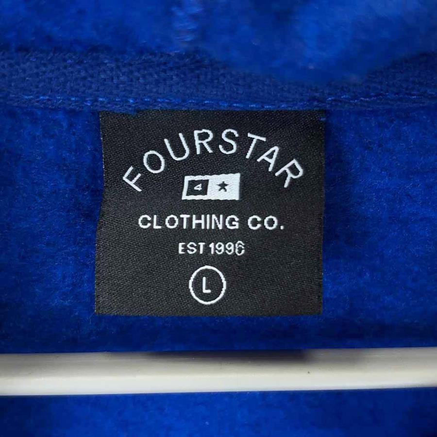 [ブランド] FOURSTAR フォースター[タイプ] フルジップ パーカー[表記サイズ] L[対象] メンズ[カラー] ブルー[身幅] 約58cm[着丈] 約70cm[状態] それなりの使用感があり、袖の汚れや内側の毛羽立ちがみられます。また、タバコの匂いがします。