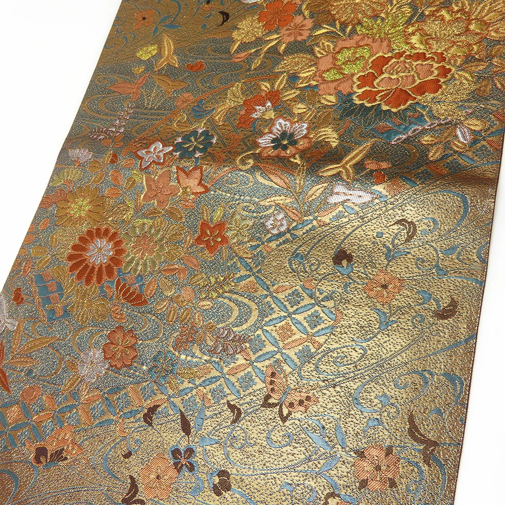 | 品名 | 【中古】 袋帯 正絹(金銀糸除く) グリーン系 ブラウン 訪問着 礼装 六通 レディース 女性 |