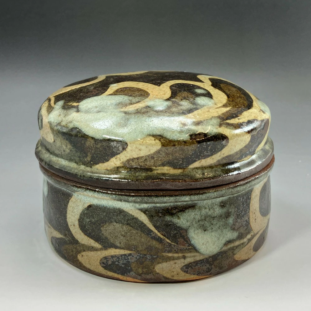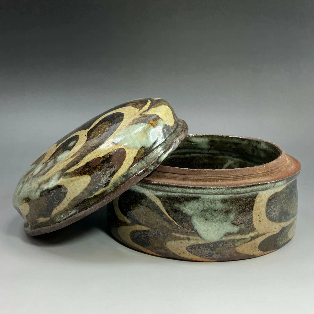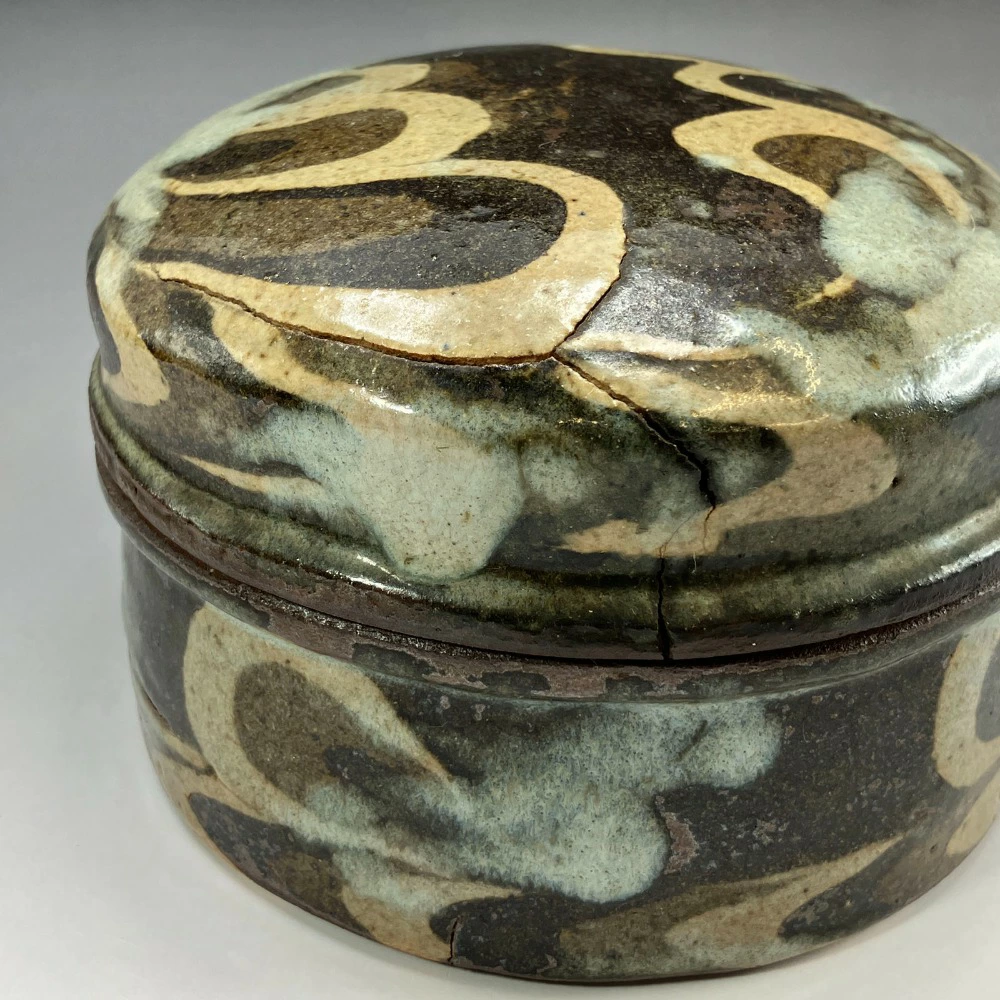 Used Kneaded Lidded Container by Ueda Tsuneji, Kyoto Ware, Kino Sarayama Kiln, Ceramics