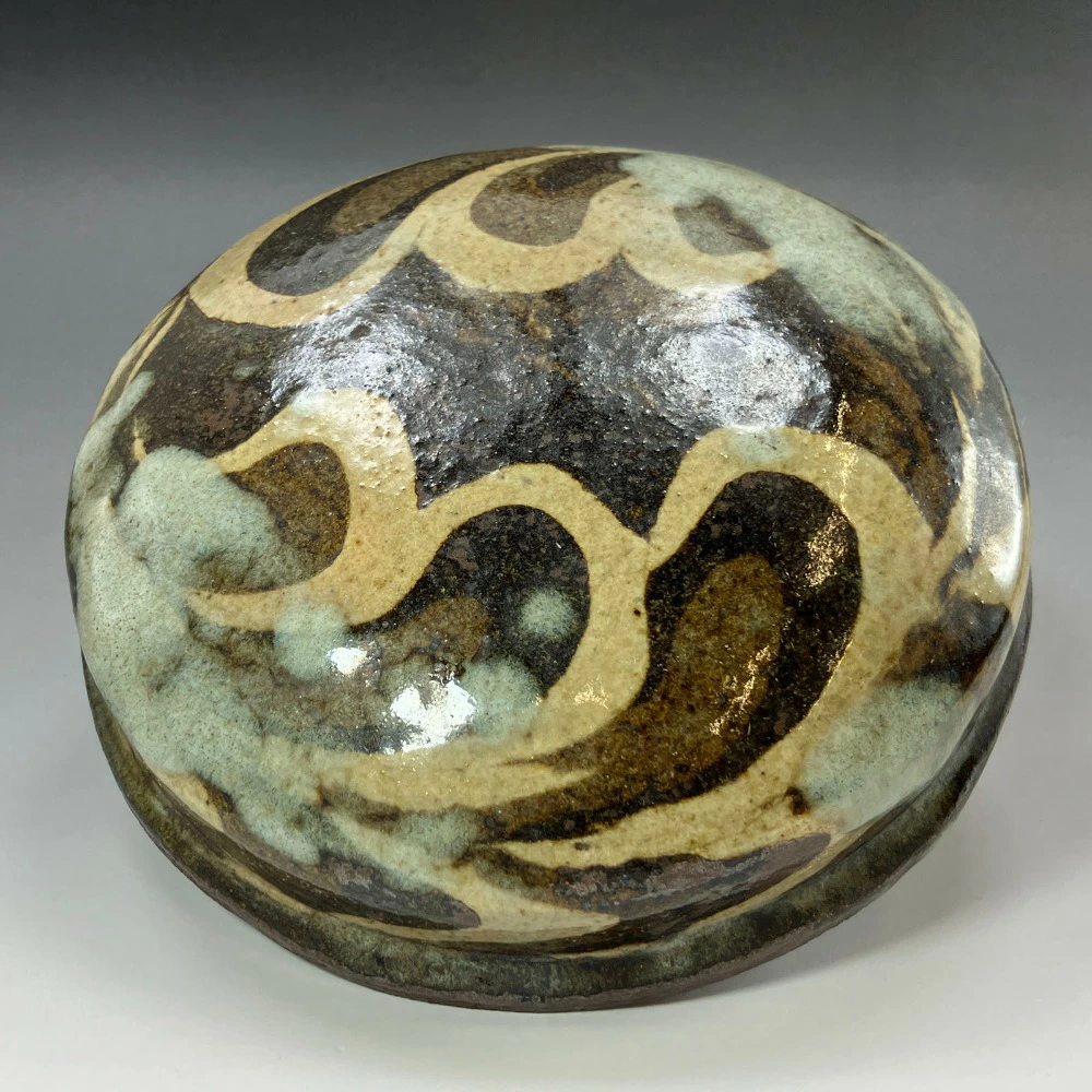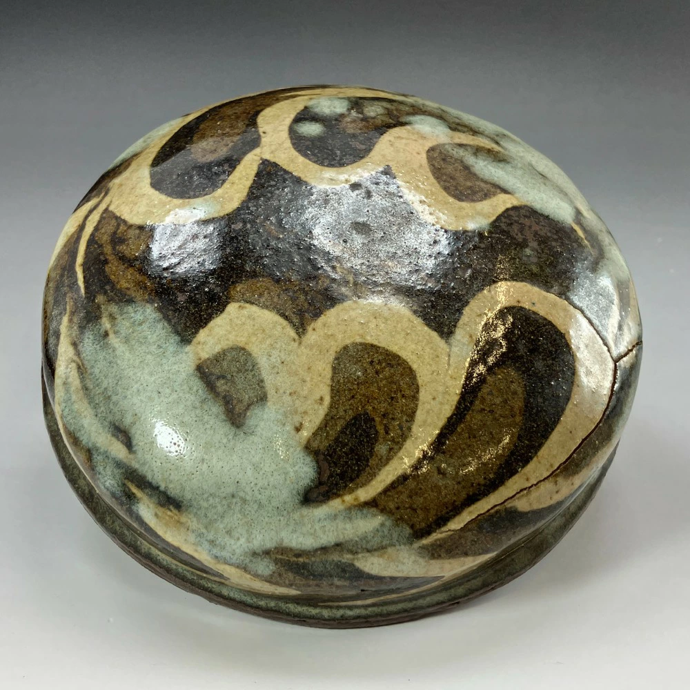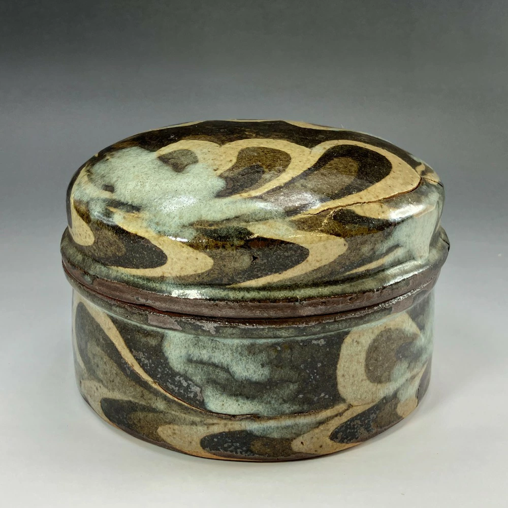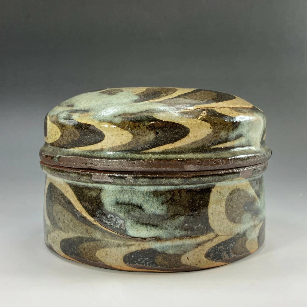 Used Kneaded Lidded Container by Ueda Tsuneji, Kyoto Ware, Kino Sarayama Kiln, Ceramics