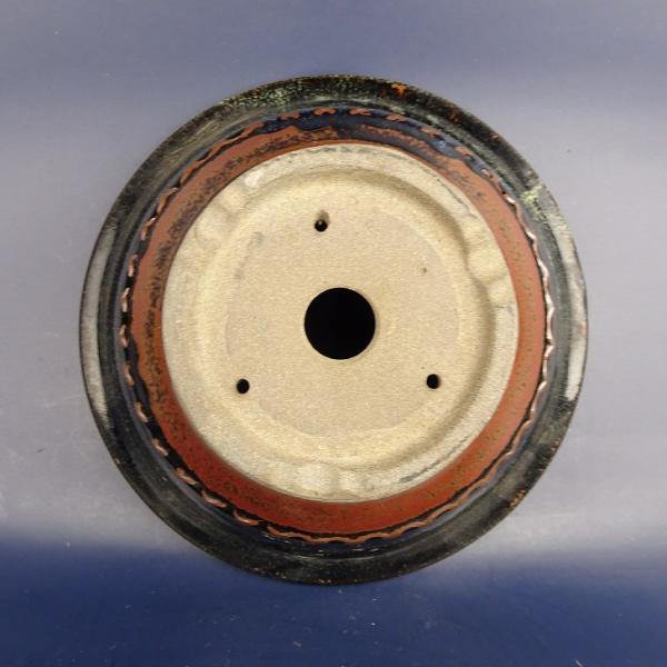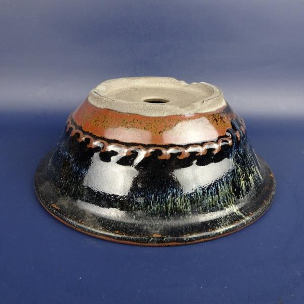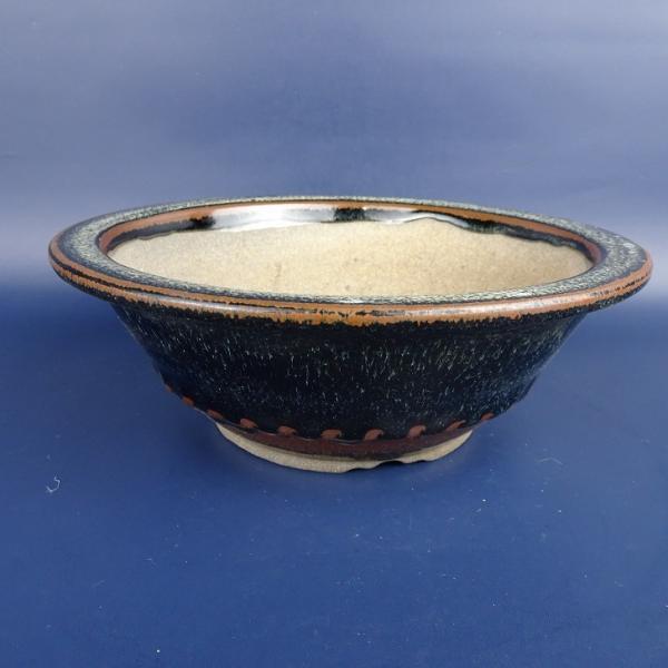 Used Koishiwara ware bonsai pot, medium size, approximately 20.5cm long, round, glazed rim, in original condition.