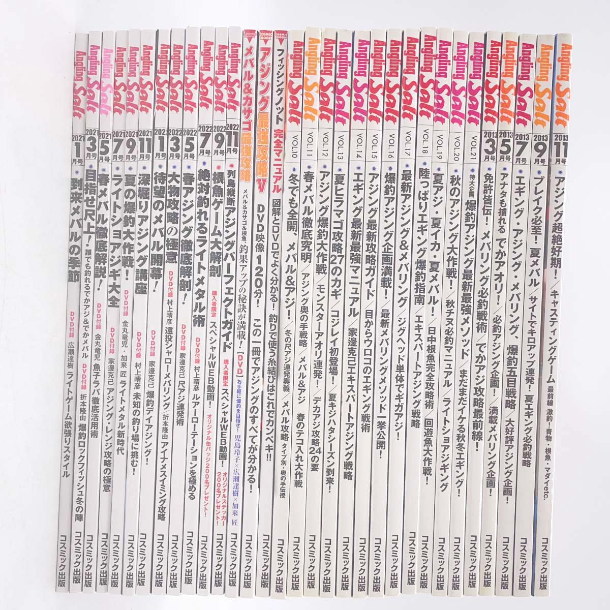 [タイプ] アングリング・ソルト 2011年3月~2022年11月号&別冊3冊 計82冊 付録DVD70点[状態] それぞれ特に目立ったダメージなどみられず、DVDに関しては70点中65点が未開封です。※DVDは以下が欠品となります。・VOL.10~15・2014年1月号・2022年3,5、7、9、11月号