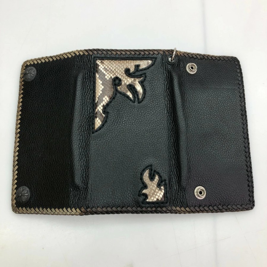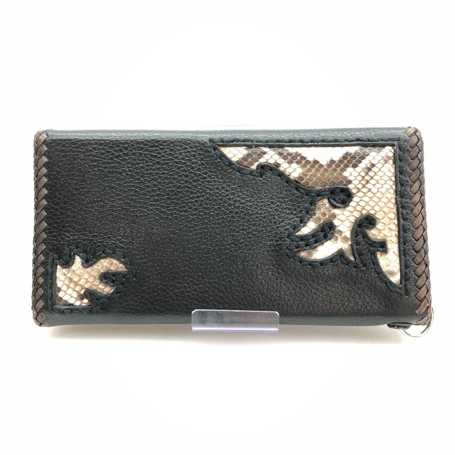 | 商品名 | 【中古】 レザーウォレット ロングウォレット 背面ヘビ柄 ブラック メンズ 長財布 05w16409 【館林店】 |