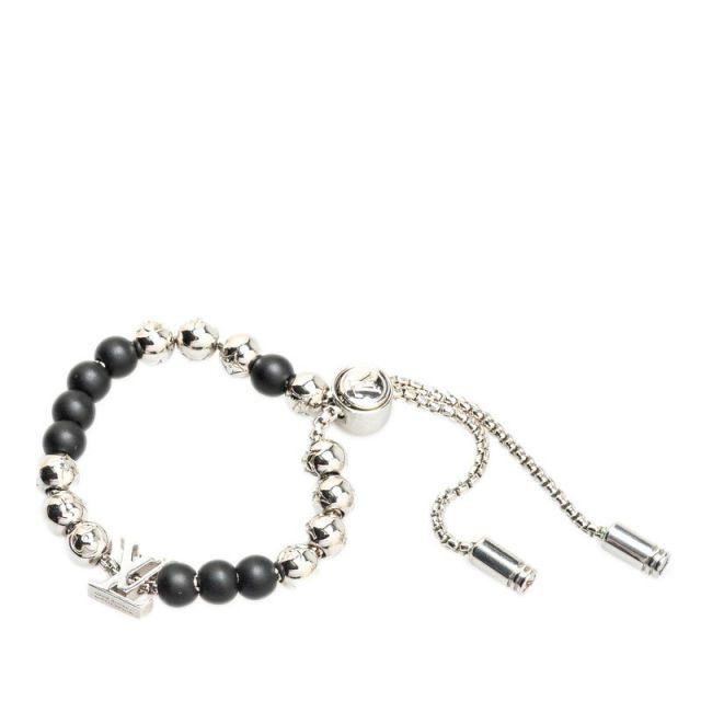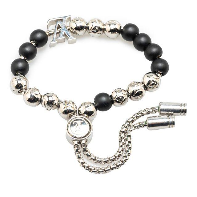 ブラックとシルバーラインの中にルイヴィトンのロゴもプラス!プッシュ式で腕周り24センチまでOKだから男女兼用でプレゼントにも!(^^)/