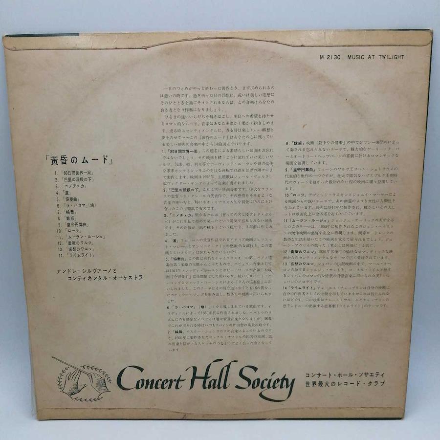 [タイプ] LP ペラ アンドレ・シルヴァーノ 黄昏のムード CONCERT HALL SM2130[状態] 古いものになるため、ジャケットなどに汚れ・ダメージがみられる場合があります。