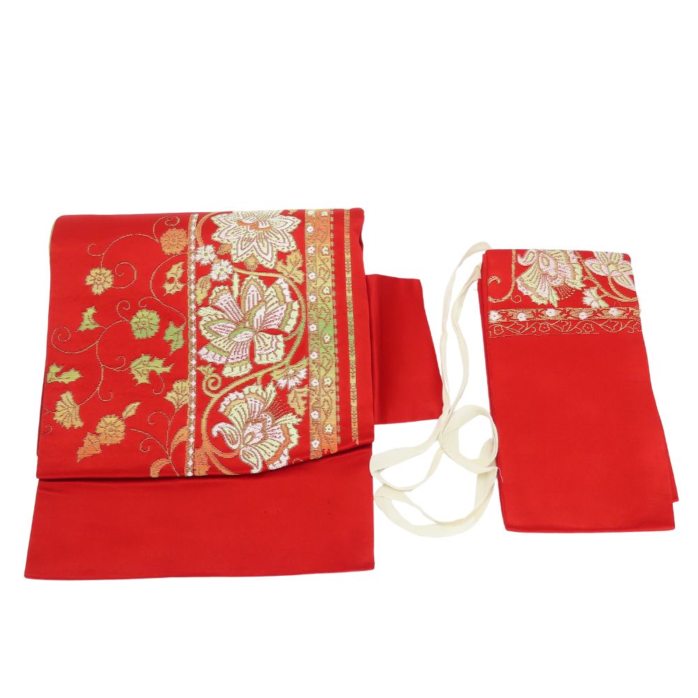 品名【中古】 その他帯 文化帯 合成繊維 レッド 造り帯 お太鼓 枕付き レディース 女性