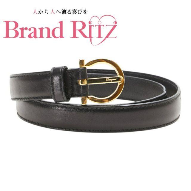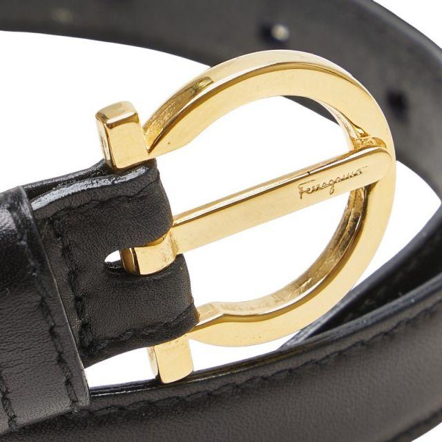 Used Salvatore Ferragamo Gancini Belt, Size 70, Black Leather with Gold Hardware, Women's. [Nishijin Store]