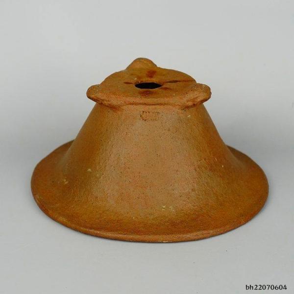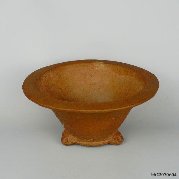 Used Senshu bonsai pot, small, approximately 15.5cm long, round, with a velvet-like rim and muddy finish.