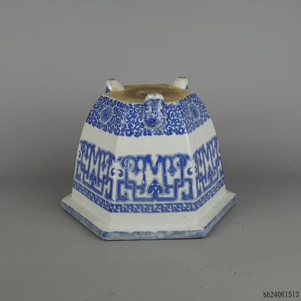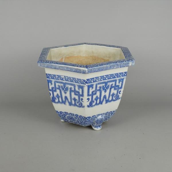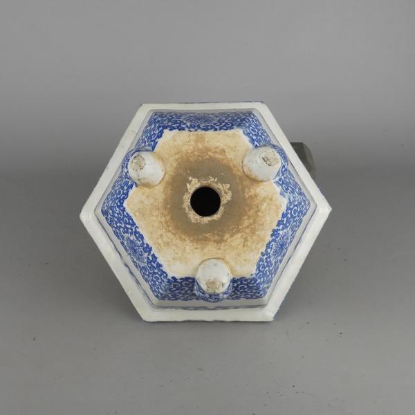 Used Seto Ware Bonsai Pot, Medium Size, Approximately 24.5cm Long, Hexagonal, Floral Pattern, Pre-Owned