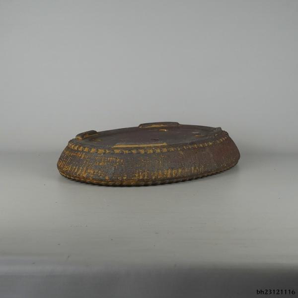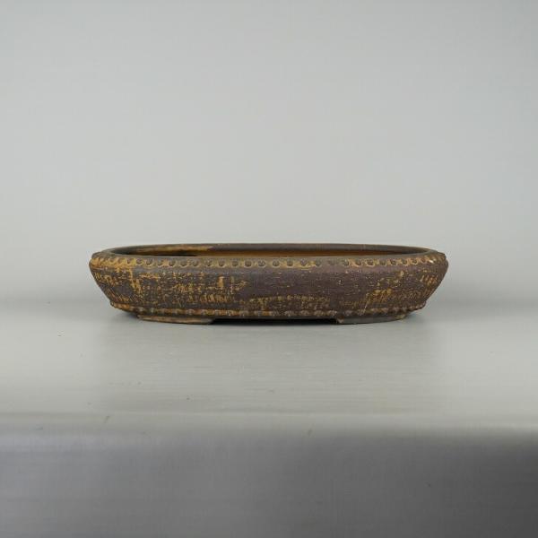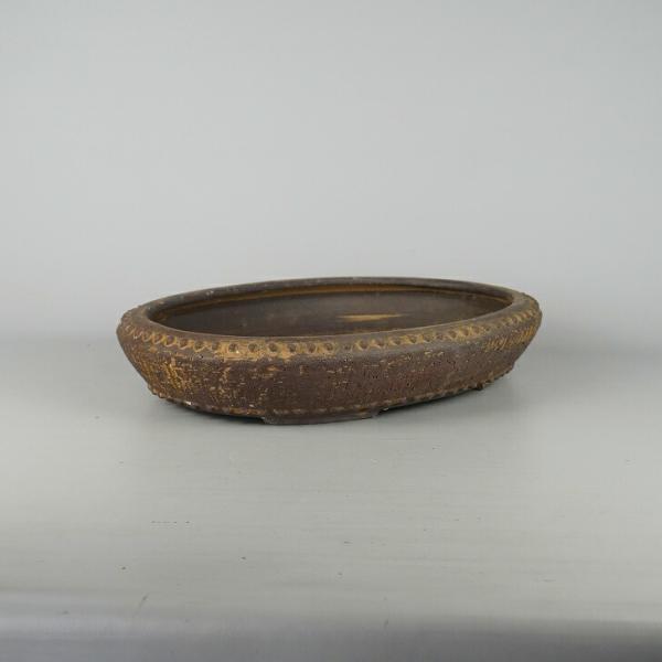 Used Tokoname Shuho Bonsai Pot, Medium Size, Long Side Approx. 37.5cm, Oval, Stud-Riveted, Clay, Actual Condition, Used Pot