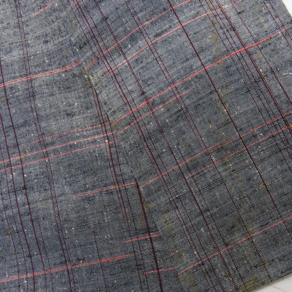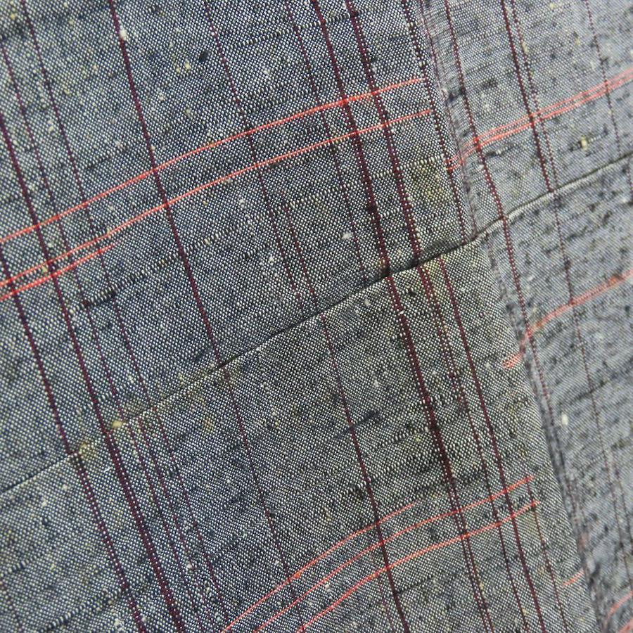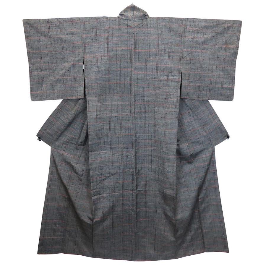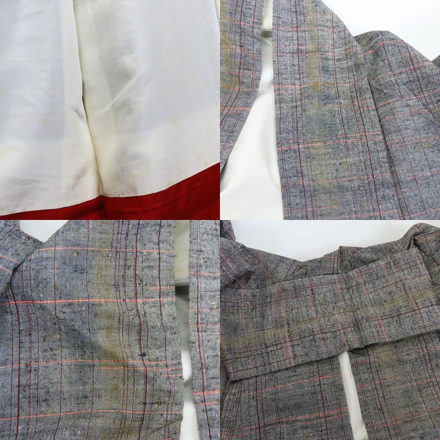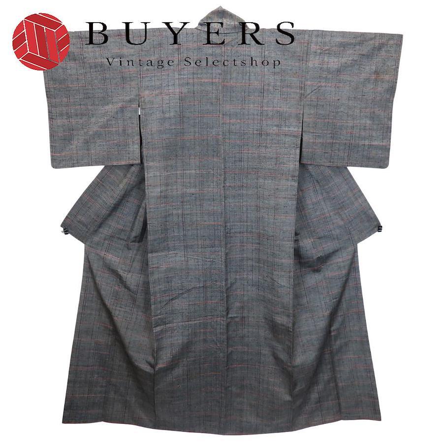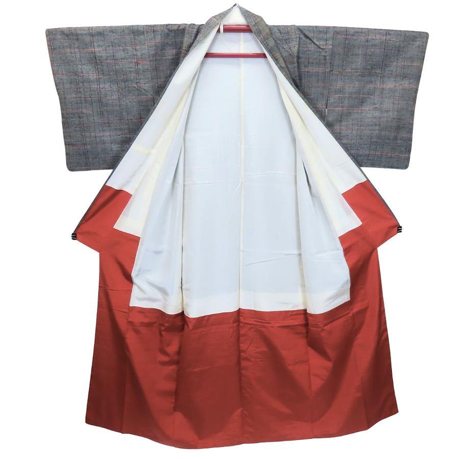 | 品名 | 【中古】 紬 正絹 グレー レッド系 単衣 縞柄 線柄 レディース 女性 |
