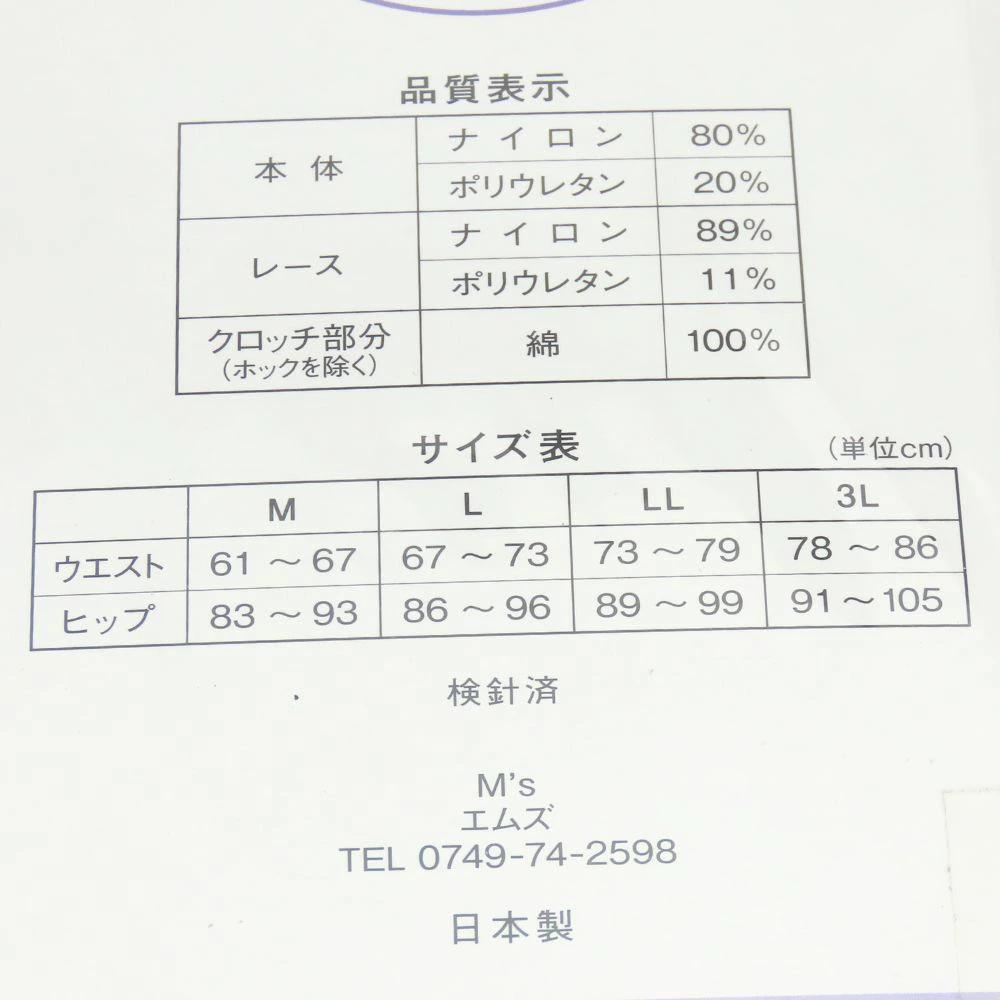 | 仕様 | 詳細備考:Lサイス:ウエスト67~73cm/ヒップ86~96cm | 付属品 | - |