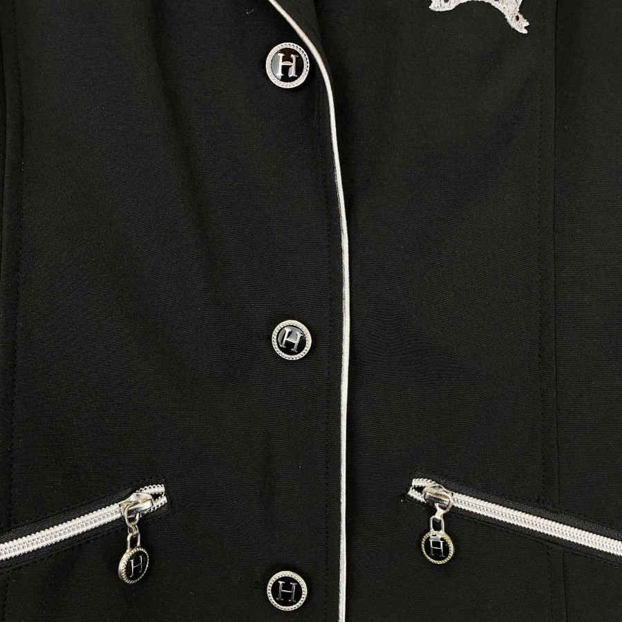 [ブランド] HARCOUR アークール[タイプ] チアラ コンペティション ジャケット 競技用[表記サイズ] M[対象] レディース[型番] HA-CP-15SS02LA[カラー] ブラック[身幅] 約41cm[着丈] 約66cm[袖丈] 約64cm[肩幅] 約41cm[状態] 未使用品(多少埃がついています。)