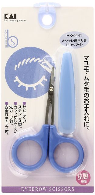 貝印KAIオシャレ用ハサミカーブ刃キャップ付ブルー眉毛ハサミ日本製HK0441