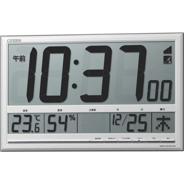 [Used] [Very Good] RHYTHM Citizen Wall Clock/Desk Clock, Radio-Controlled, Large LCD Display, Temperature and Humidity Gauge, Silver, 20.7 x 33.0 x 2.8 cm, CITIZEN 8RZ200-003