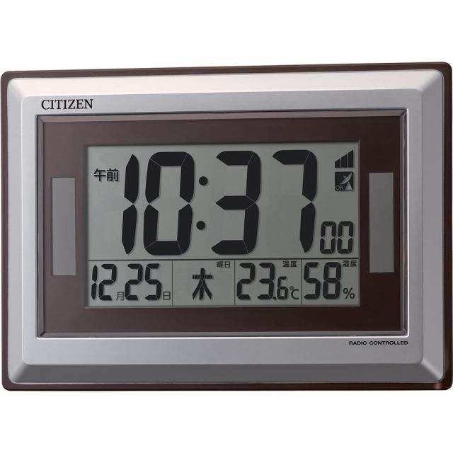 [Used] [Very Good] RHYTHM Citizen Wall Clock, Radio-Controlled, Digital, Solar Powered, Wall/Desk Use, Green Procurement Law Compliant, Silver, CITIZEN 8RZ182-019