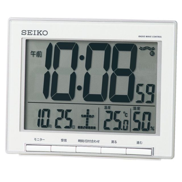 セイコークロック目覚まし時計電波デジタルカレンダー温度湿度表示大型画面銀色メタリックSQ786SSEIKO