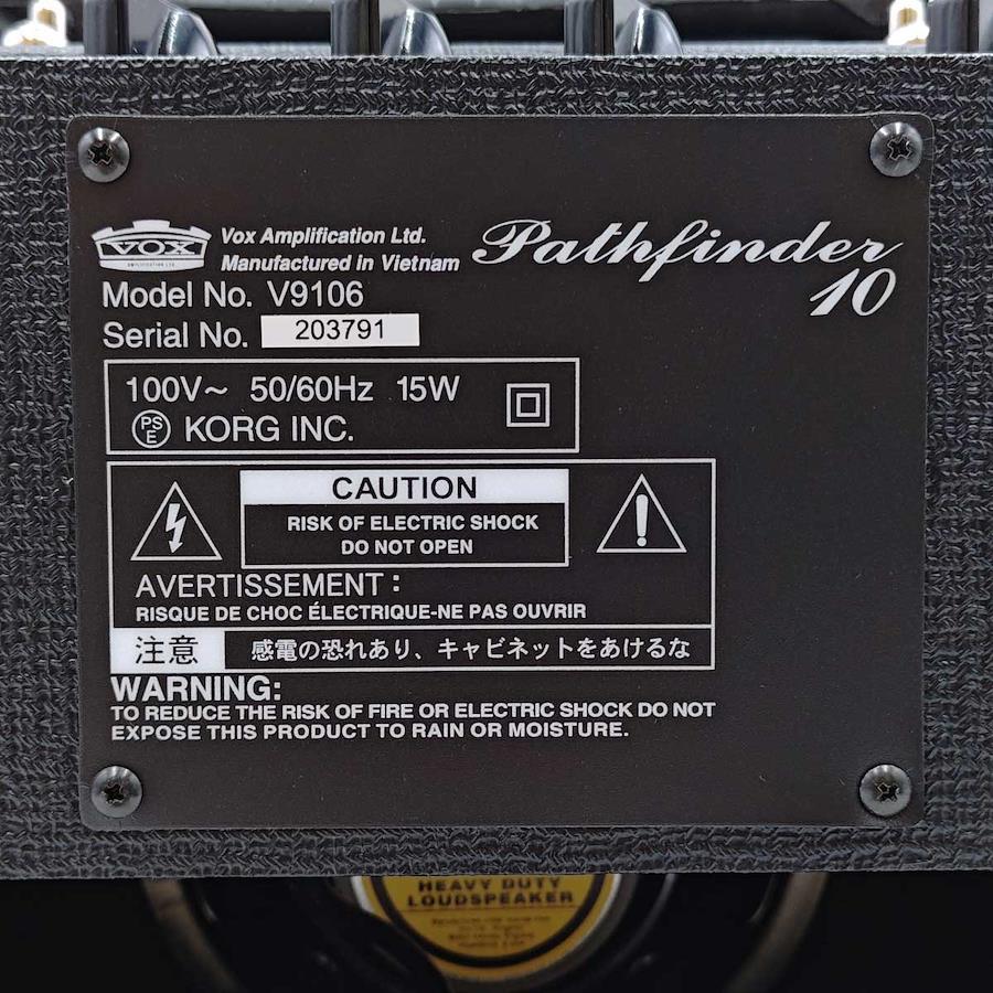 [タイプ] VOX ギターアンプ Pathfinder10 Model No. V9106[状態] 目立ったダメージはありませんが、四隅に少し汚れや傷みがみられます。