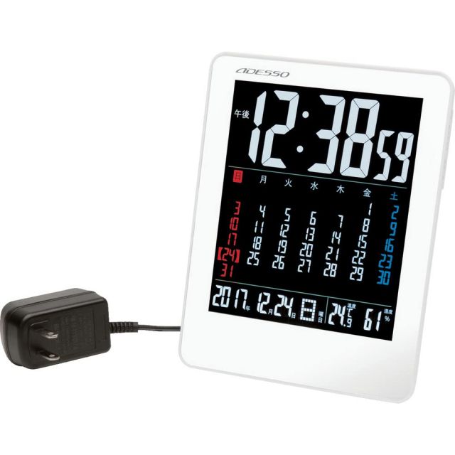 ADESSO(アデッソ)置き時計電波デジタルカラーカレンダー電波時計温度湿度曜日日付表示置き掛け兼用ホワイトNA-929