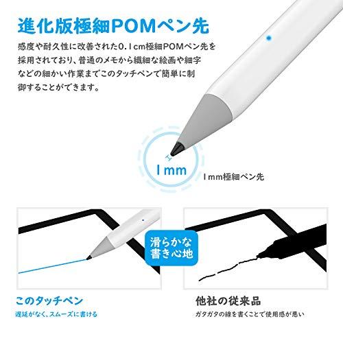 【改良版の極細な樹脂製ペン先】:?従来の金属のペン先は、書く時に常に遅延したり、線が消えたり、ズレが生じたり、文字が途切れることでスムーズに書けませんが、このタッチペンはそれらの問題を完璧に解決してくれます。独自設計した先進的な高感度POM樹脂ペン先を採用されておりますので、紙に書くように滑らかに書けられて優れた操作性を実現されます。また、ペン先は1mmの極細仕様なので、メモを取ったり、スケッチを描いたり、ゲームをしたりことだけではなく、精密な作業でもしっかり行えます。