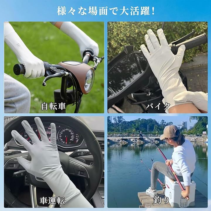 「手のひら開口デザインで通気性抜群。 滑り止め加工で快適持続」独自の特許取得手のひら開口uvカット手袋が通気性を大幅にアップ。 汗による不快感を解消します、夏の蒸れ・べたつきにサヨナラ。自転車・バイク通勤・工具作業・ゴルフ・長距離ドライブなど、暑い季節でもずっと快適。