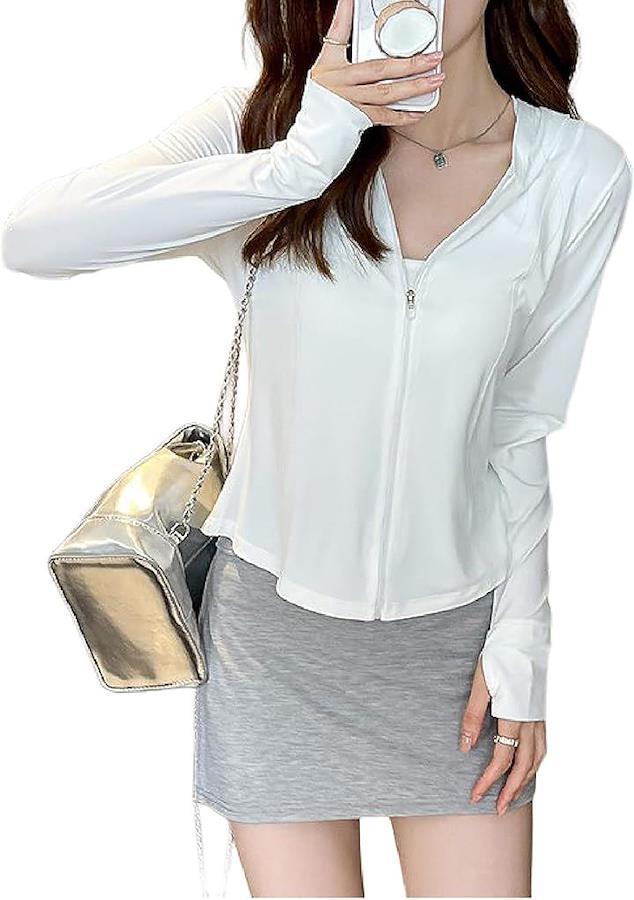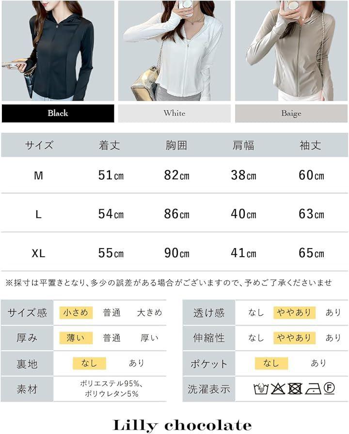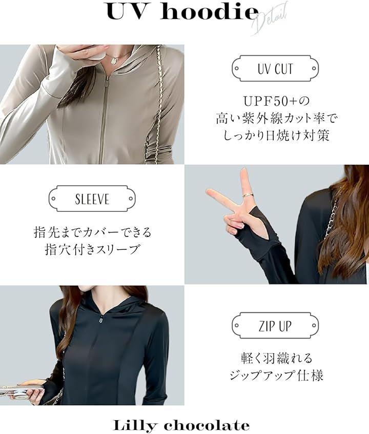 指先までカバーできる指穴付きスリーブや、首元までしっかり覆えるフード付きデザインで、屋外での紫外線対策に最適。