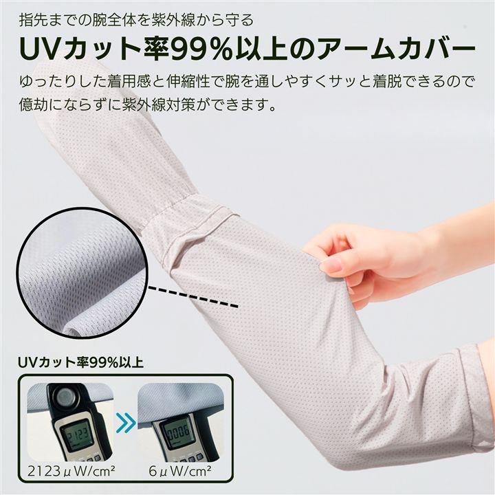 指先まで腕全体を紫外線から守りながらも、外での運動時や作業時にサッと身につけられる、指先までの腕全体を紫外線から守るUVカット率99%以上のアームカバーです。