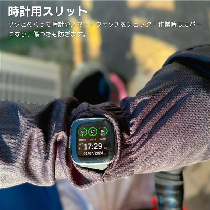 通気性が良くサラサラな冷感素材で、手のひらが開いていたり、スマートウォッチをチェックできる小窓がついていたりして、普段と同じように生活できる工夫がなされています。