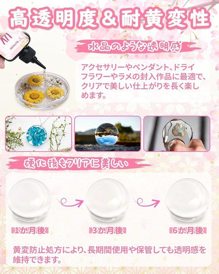 「多様な用途 & 創作の自由度」DIYアクセサリー(ネックレス、イヤリング)、キーホルダー、スマホケースの装飾、写真や押し花の封入、家具やコインのコーティングなど、幅広い用途に対応しています。